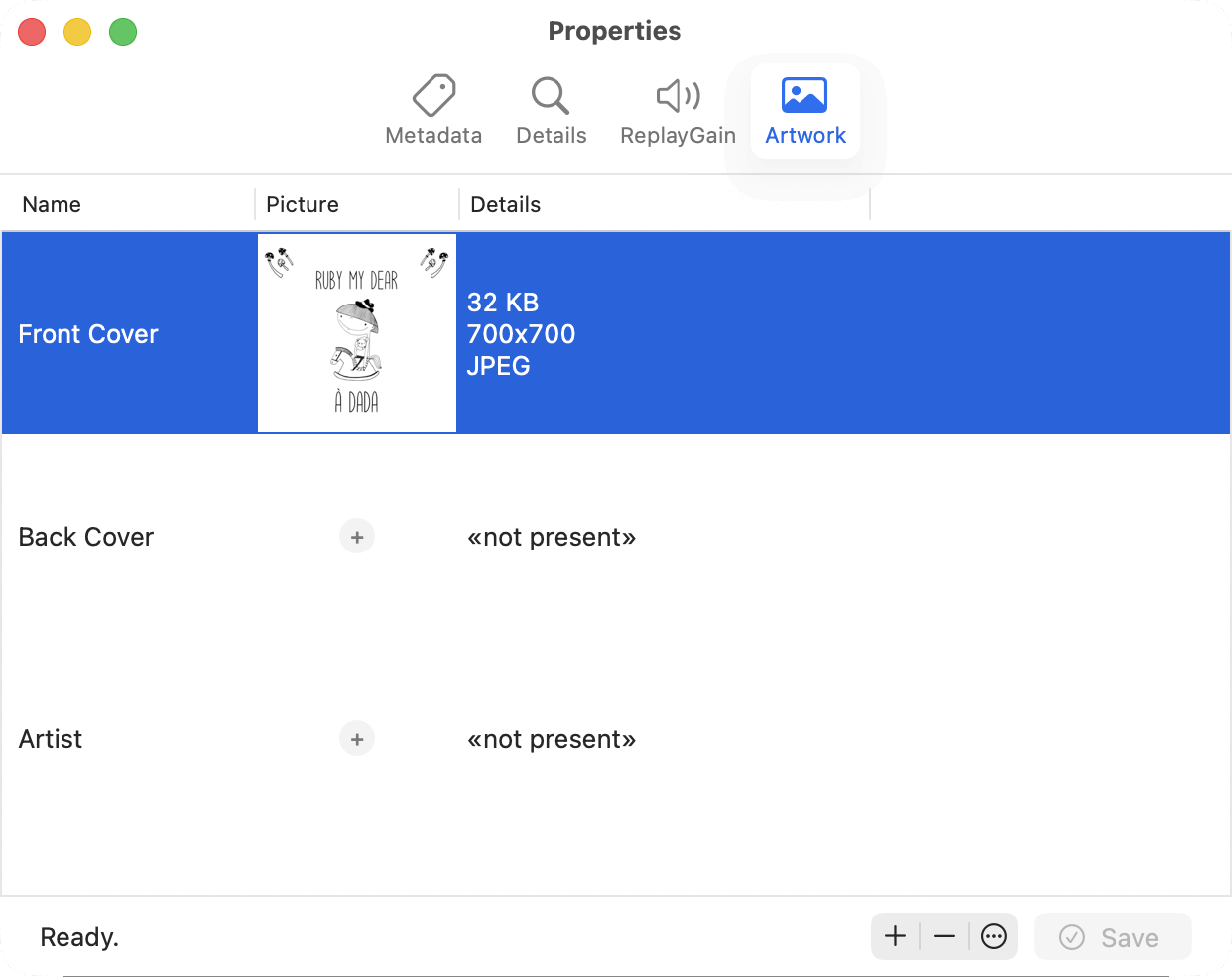 Properties dialog / artwork